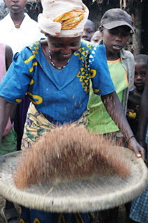 Woman sifting through millet.